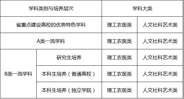 (2)本表所称的“研究生培养”是指在获批省一流学科建设时已具有研究生(含专业学位研究生)培养资格的学科;“本科生培养”是指在获批省一流学科建设时仅具有本科生培养资格的学科。