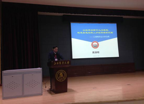 中国农学会教育专业委员会2016年学术年会于11月9日至11日在山西农业大学召开。全国40多所农林院校的校领导、教育教学管理与研究人员、教育学科方面的专家和研究生共计100多人参加了会议。周清明书记应邀作了题为《以协同创新中心为载体,构建卓越农林人才协同培养机制——以湖南农业大学为例》的报告。