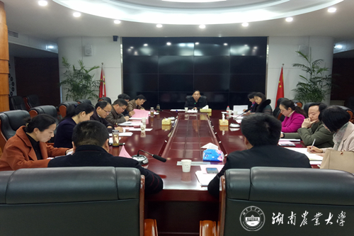 品牌建设工作小组办公室主任周跃斌对学校品牌特色项目组织情况进行了汇报:学校于2017年6月启动品牌特色项目创建工作,出台了《湖南农业大学品牌建设规划》,经各二级单位申报、品牌建设工作小组遴选、品牌建设工作领导小组审定,确定了“神农学者”等8个品牌项目、党建先锋工程等9个特色项目为首批品牌特色项目。2018年2月学校召开党委务虚会议,将“推进品牌特色项目” 纳入学校2018年重点工作之一。