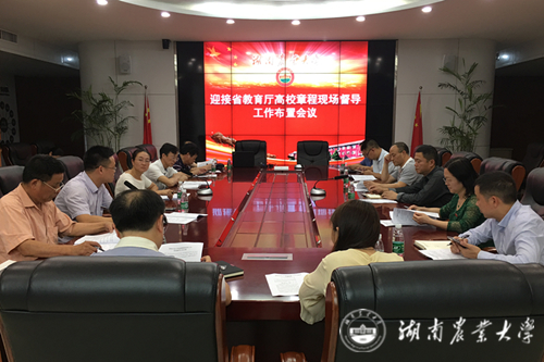 会议通报了5月17日全体处级干部章程测试的情况,就学校迎接5月29日省教育厅高校章程实施现场督导的各项工作进行了具体部署,并审议通过了《湖南农业大学迎接章程实施工作现场督导工作方案》。